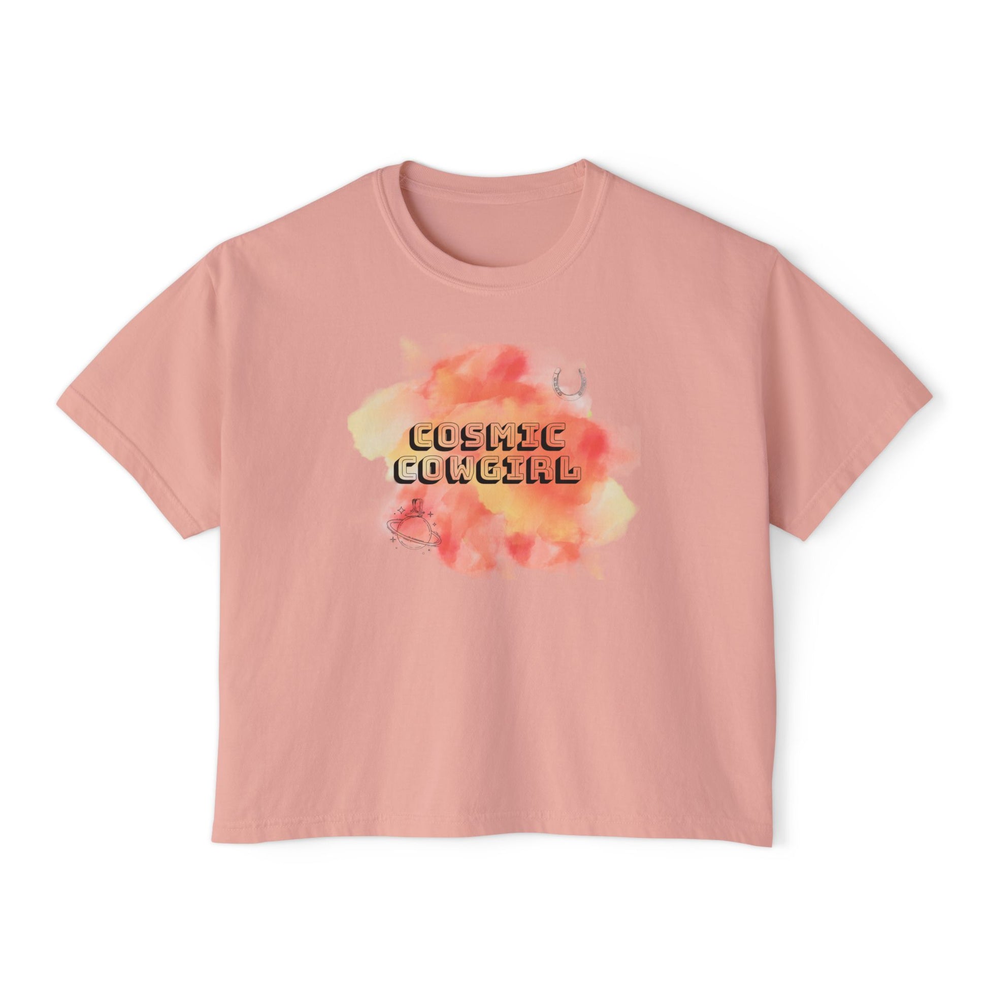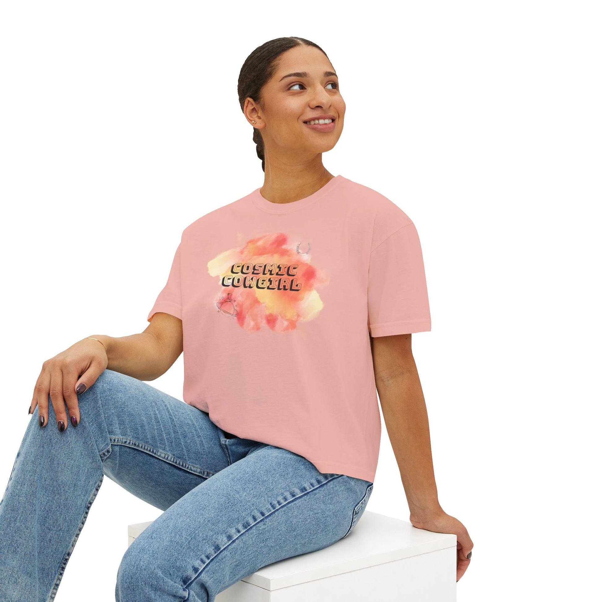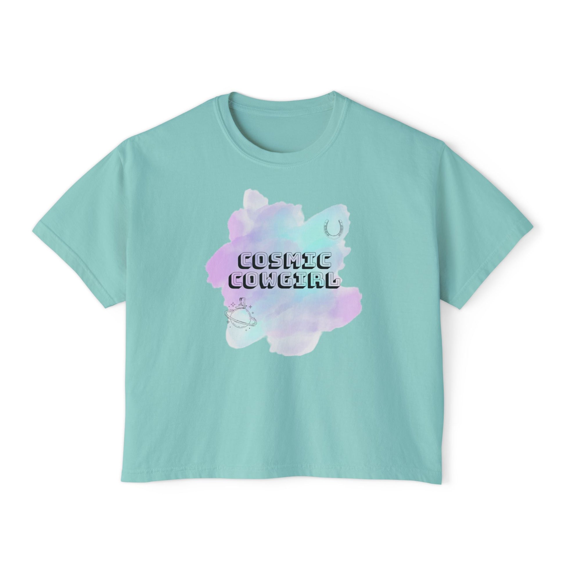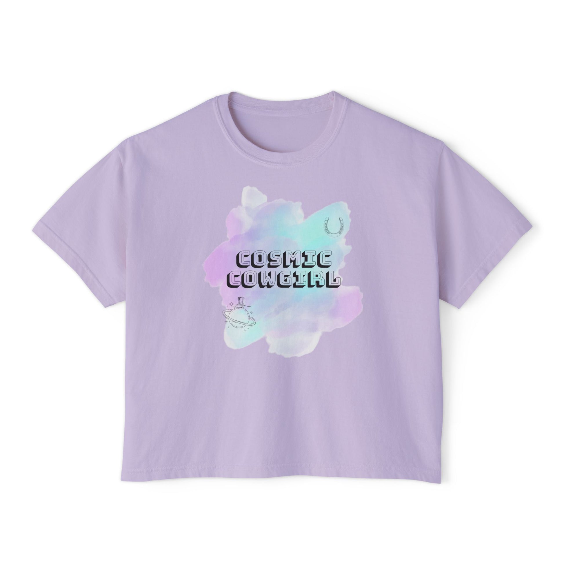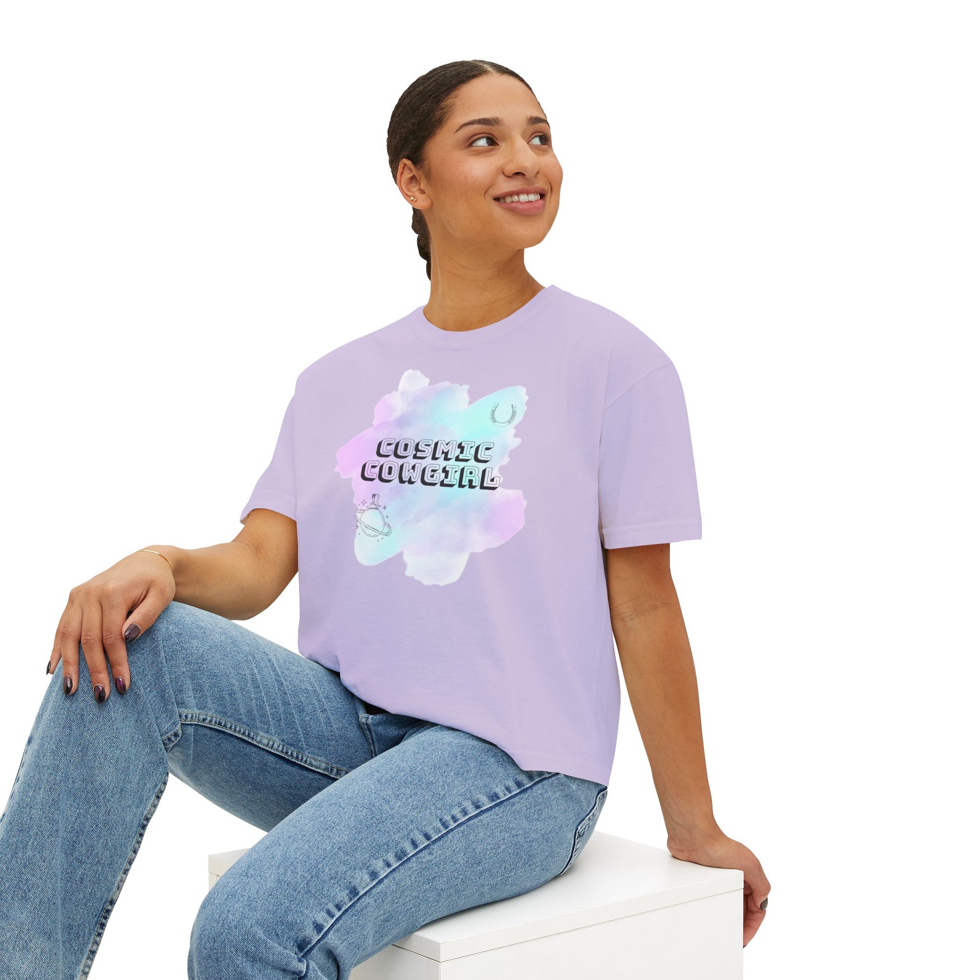 Cosmic Cowgirl Women's Boxy Tee - Soft Pastel Graphic Shirt for Lovers